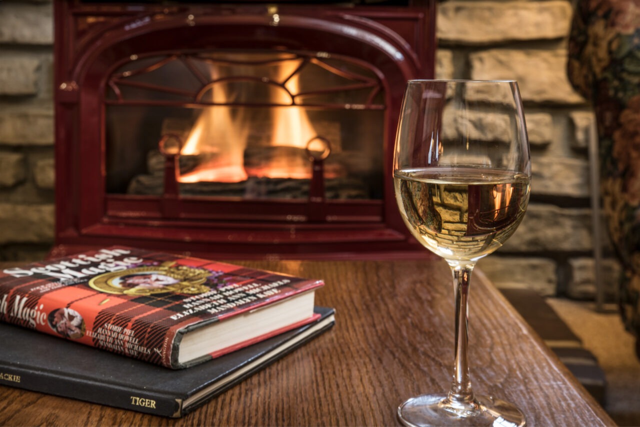 Located on the second floor of the Manor House, this handsome suite offers a one-person bubble tub; and the only known bidet in Hocking County is tucked away in the private bath. A cozy chair for reading is located in the corner nook, and a fainting sofa is beside the Franklin stove in view from the half-canopied king-sized bed. A quaint writing table sits under corner windows providing scenes of the woods. Done in dark oak and rich fabrics, the MacKenzie is considered a most elegant choice of accommodations at our Hocking Hills Inn.