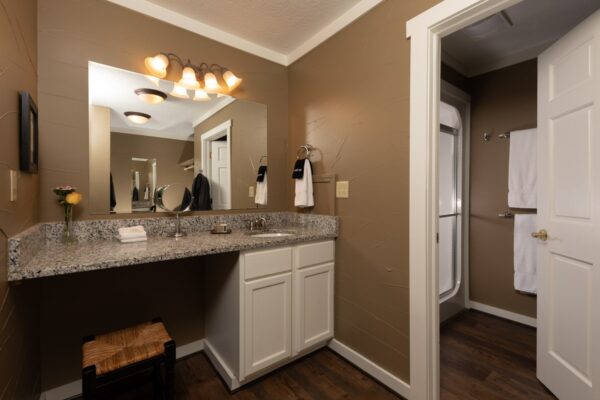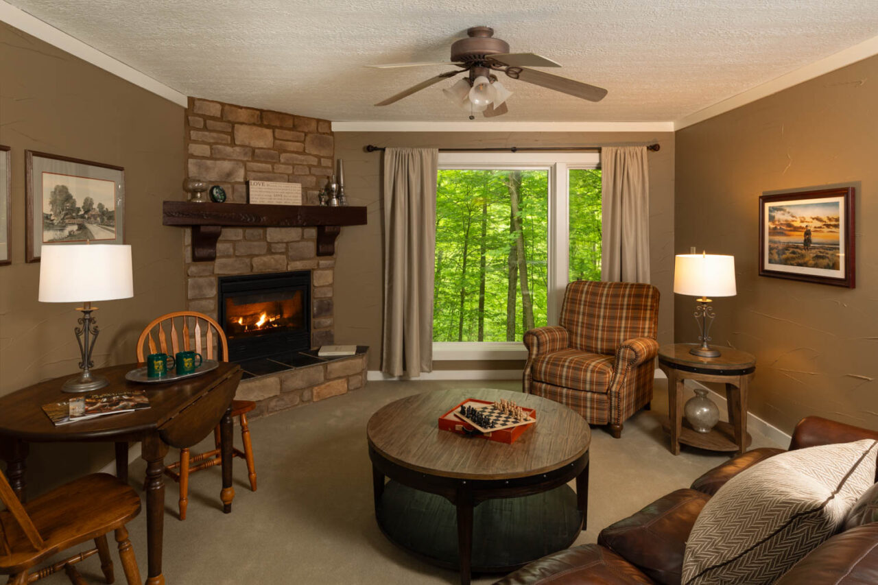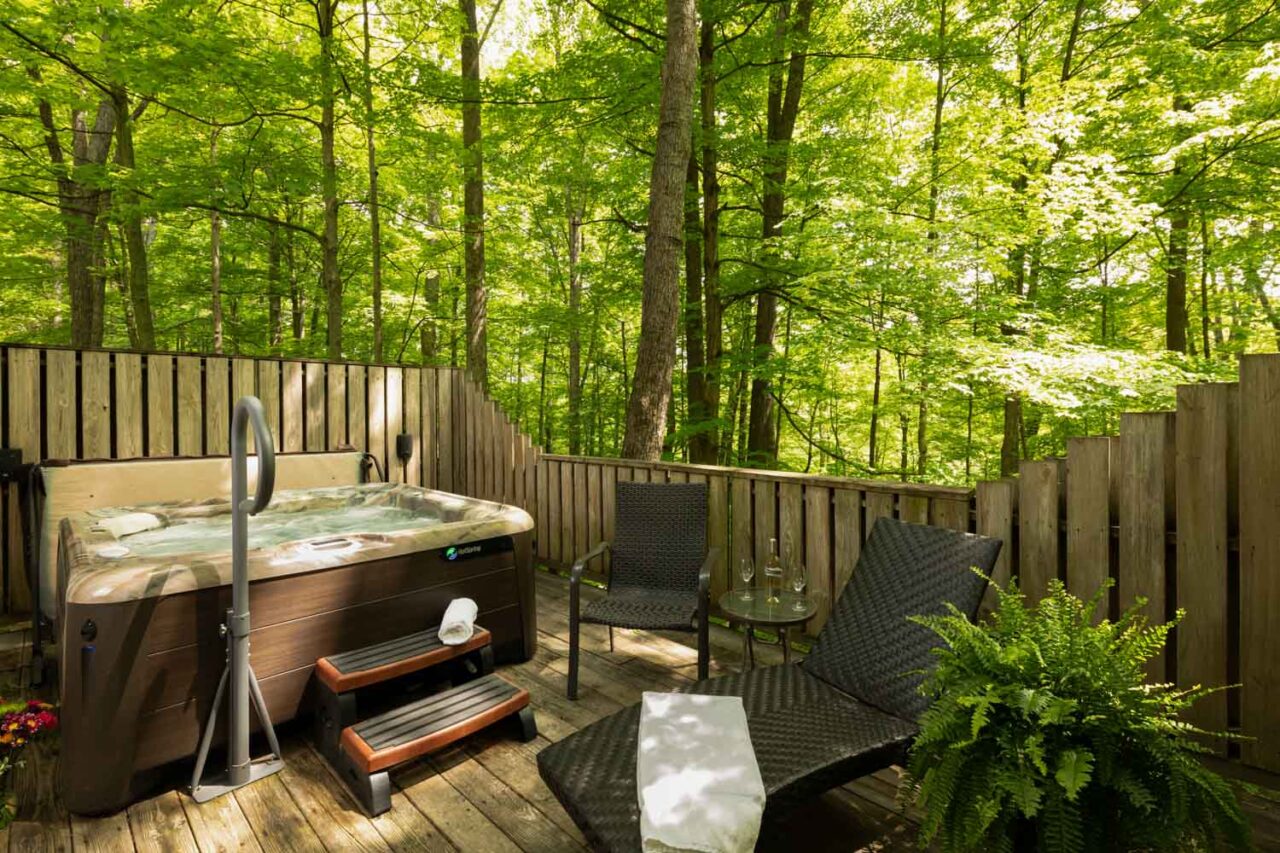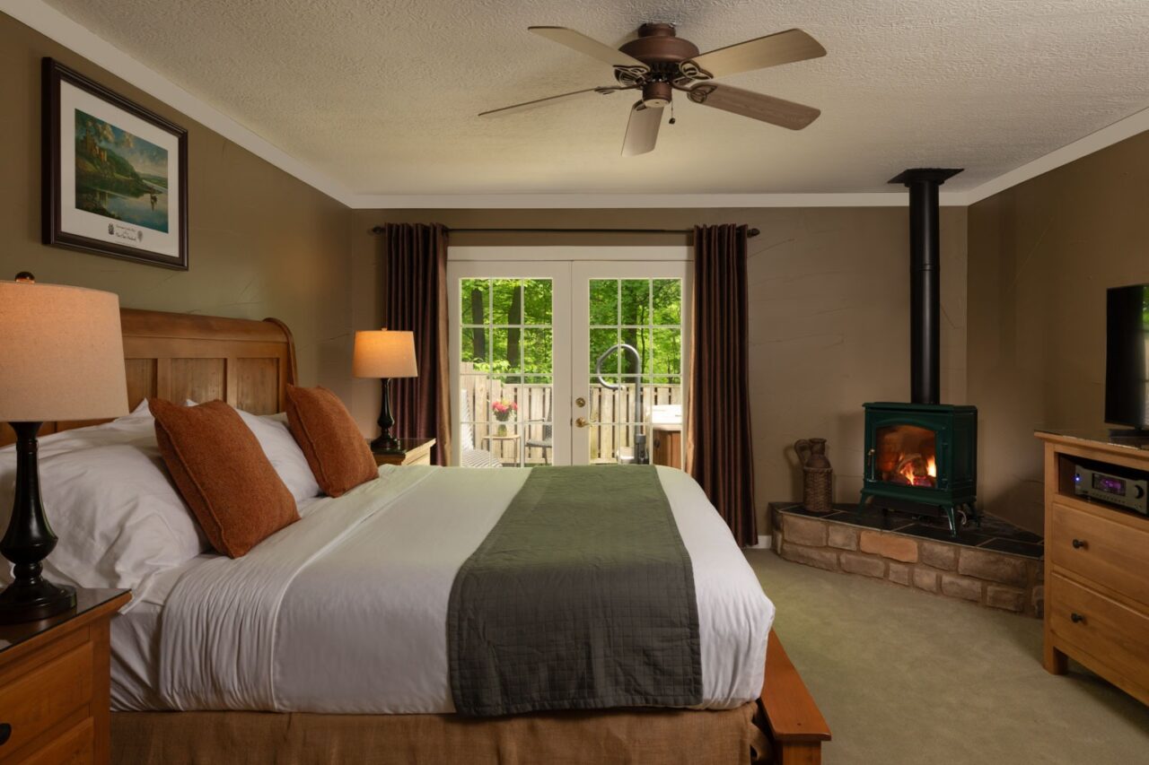 Surrounded by picturesque gardens and tranquil woods, the Macleod Cottage is a serene and peaceful hideaway, offering the perfect setting for romantic getaways in Ohio. The Macleod Cottage offers a spacious and comfortable living area, complete with a plush armchair, a sofa, and a flat-screen TV, perfect for relaxing after a day of exploring the stunning Hocking Hills region. The cottage also has a private bathroom, providing the ultimate indulgence for couples.