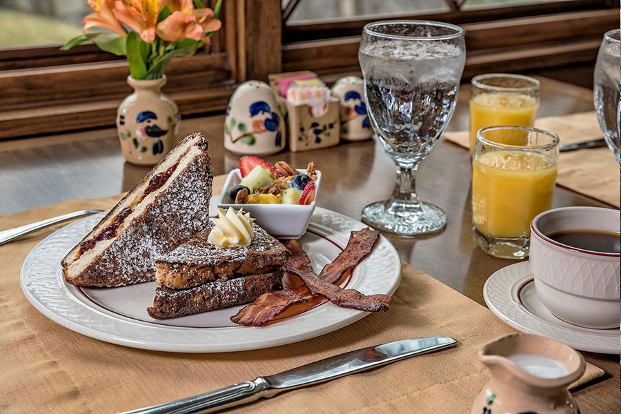 A full, three-course gourmet breakfast is always included with your night’s stay at Glenlaurel, A Scottish Inn & Cottages. Houseguests awake from the silence of a refreshing night’s sleep to realize that someone else is preparing breakfast. Depending on the season, you’ll be seated in the Glasgow or St. Andrews dining rooms or outside on the Grand Deck.